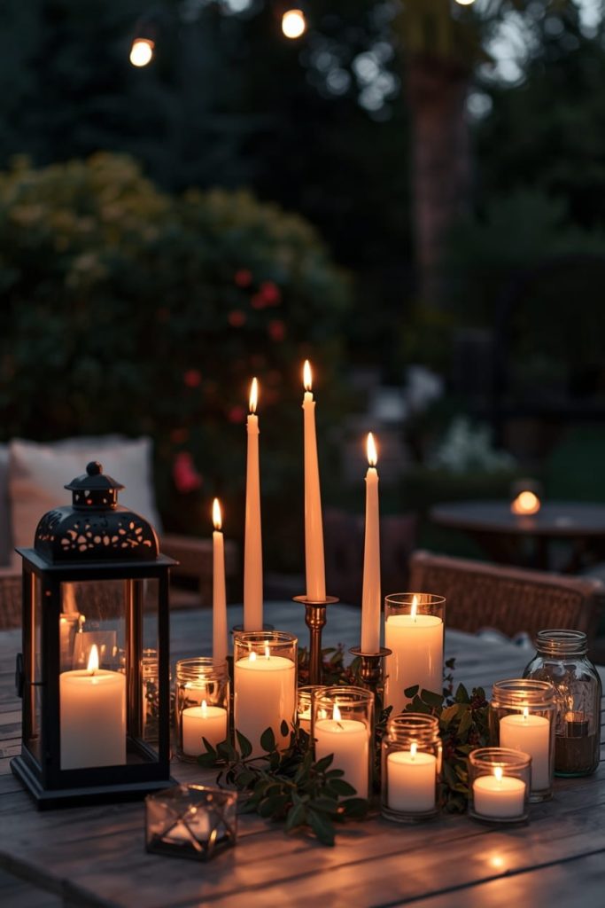 3. Outdoor Candle Cluster (Cozy Backyard Patio Decorating Ideas)