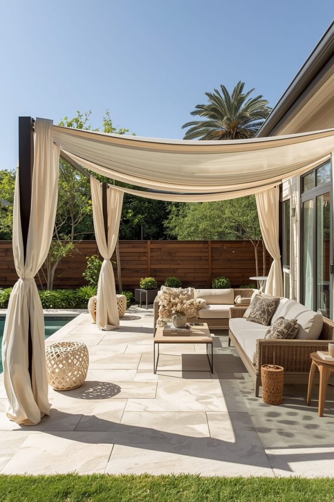 It became a focal point and elevated my space into a more refined look. This fits perfectly into luxury backyard patio design ideas.