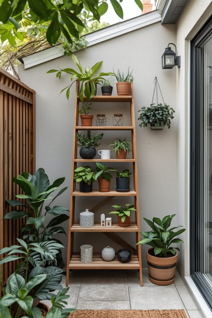 8. Decorative Plant Ladder (Small Backyard Patio Decor Ideas)