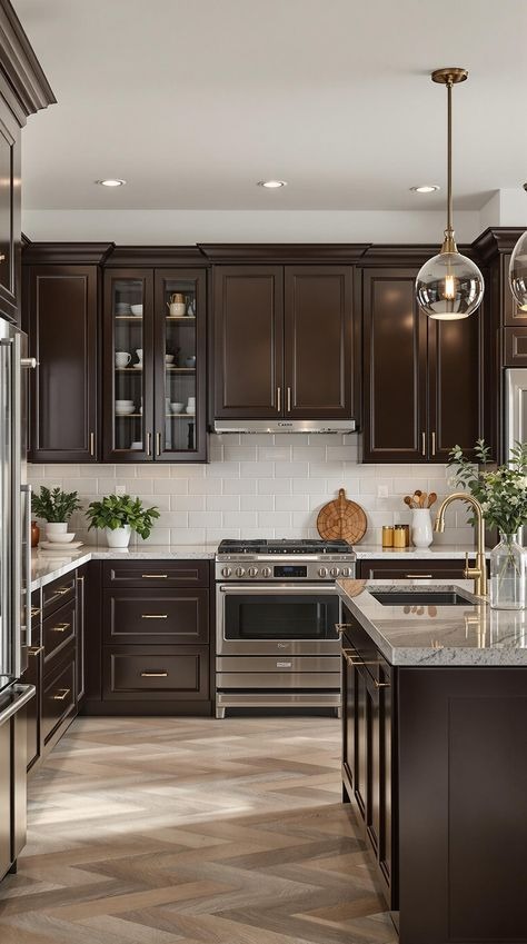 When I think of modern brown kitchen cabinet ideas, chocolate brown stands out for its rich tone and versatility. Pair it with sleek lines, minimal hardware, and contemporary fixtures to create a space that feels both warm and ultra‑chic.