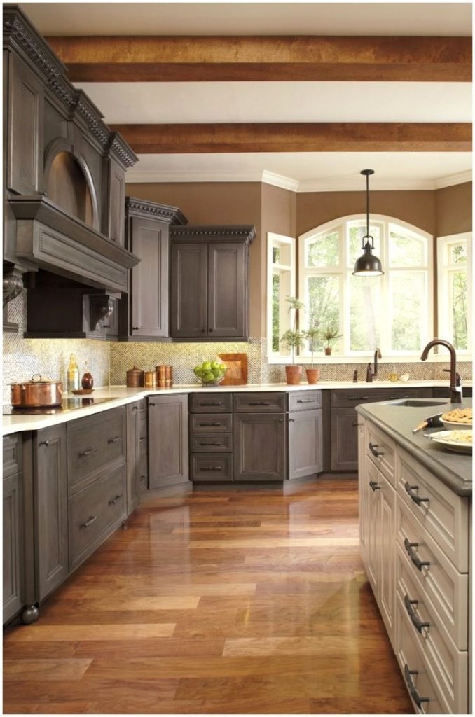 I love taupe brown cabinets with clean white countertops and stainless steel hardware. This combination makes the kitchen feel serene and sophisticated without pulling attention away from other design features.