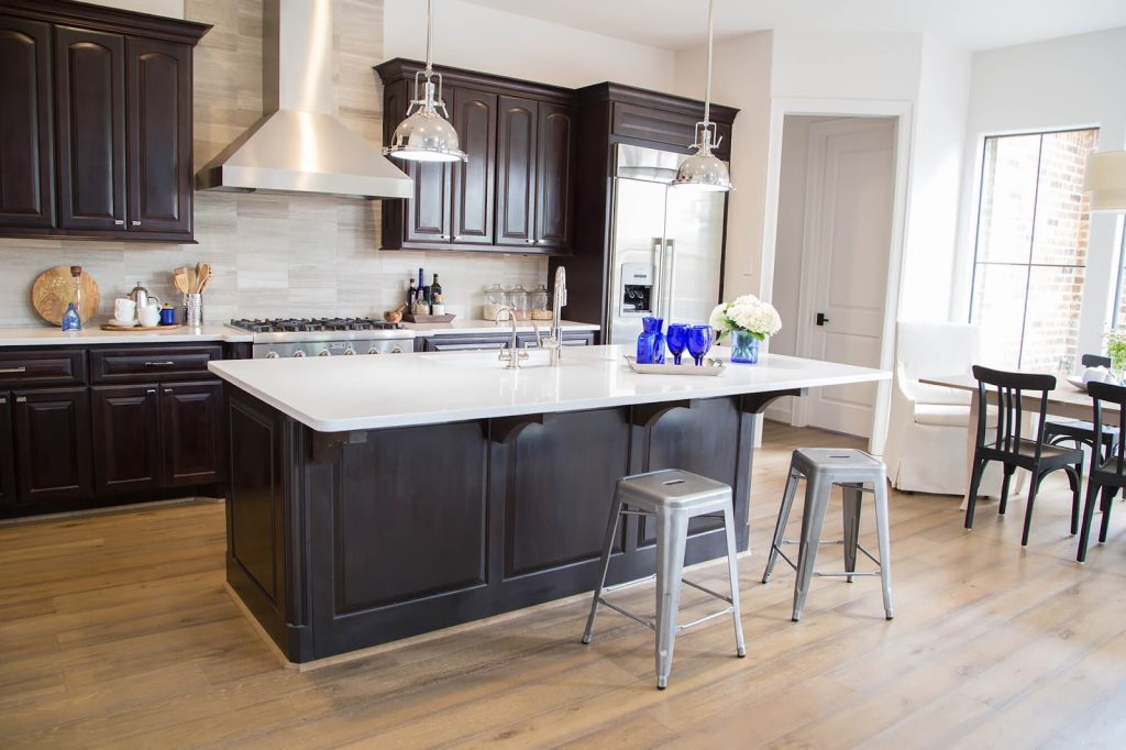 This approach allows you to enjoy the richness of chocolate or espresso brown while keeping the kitchen feeling open. Lighter island tones — think light mocha or beige — give you a focal point that feels welcoming and balanced.