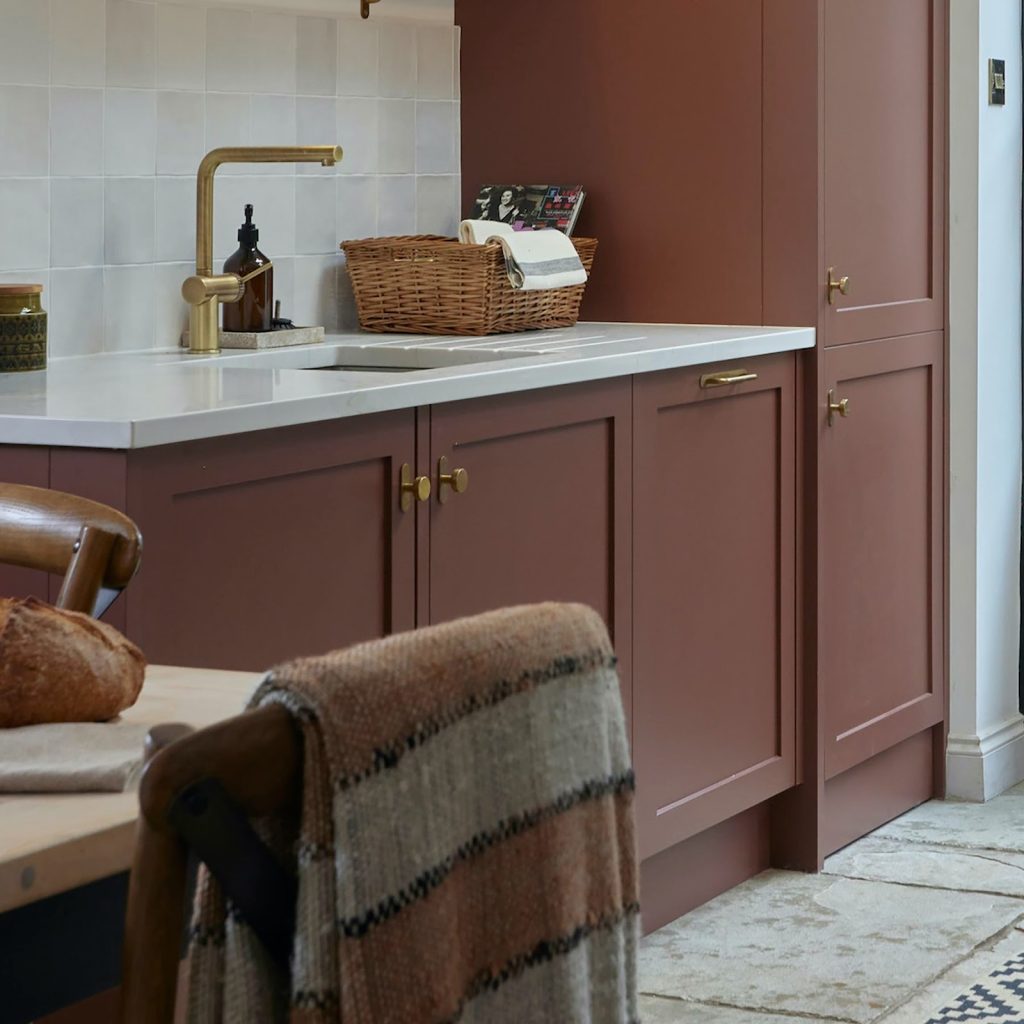 Caramel brown offers a golden warmth that’s both cheerful and rich. I reach for this shade when designing kitchens that feel bright, inviting, and full of life.