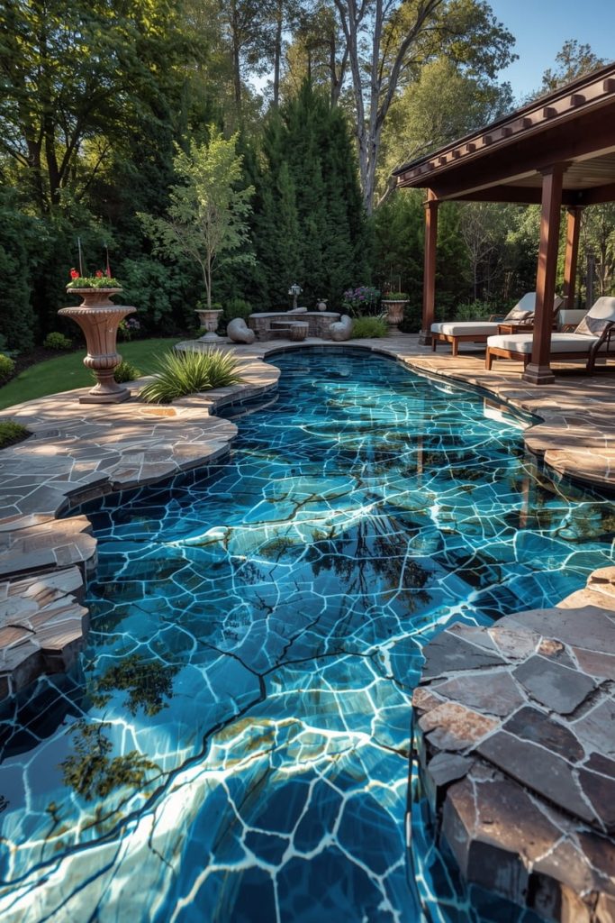 One of the most unique epoxy patio floor ideas I’ve come across is 3D epoxy flooring. This design creates the illusion of depth, making your patio look like it has water, cracks, or even underwater scenery.