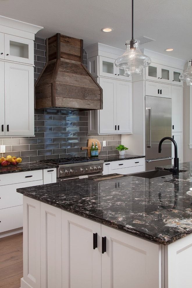 Backsplash ideas with dark granite and light cabinets can dramatically shift the mood of the space.