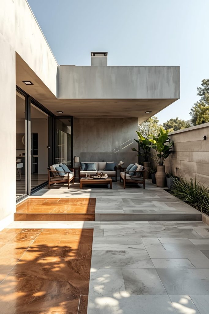 From ceramic to porcelain, there are endless choices. This is one of my go-to patio flooring design ideas when I want something sleek and stylish.