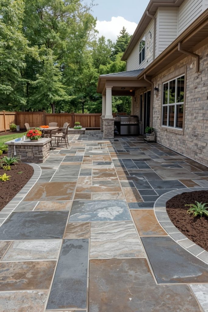 11. Flagstone Patio Design (Elegant & Organic)