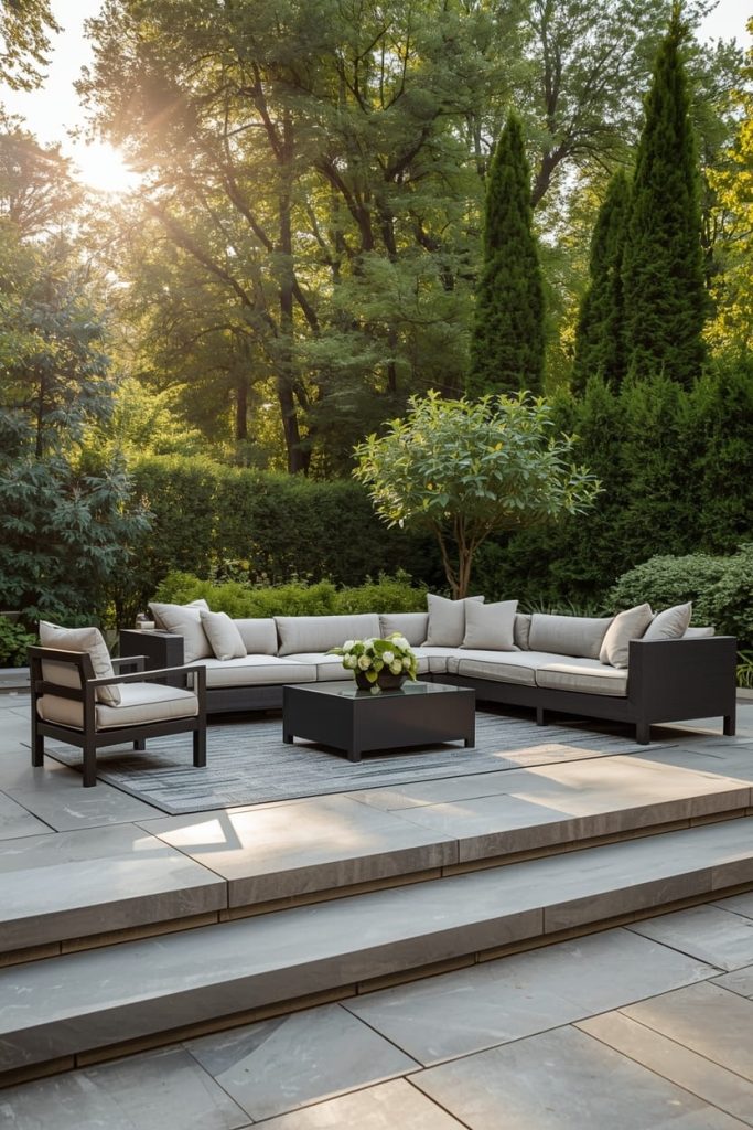 Natural stone is hands-down one of the most stunning outdoor patio flooring ideas I’ve explored. Whether it’s slate, limestone, or sandstone, it adds an organic and luxurious touch.