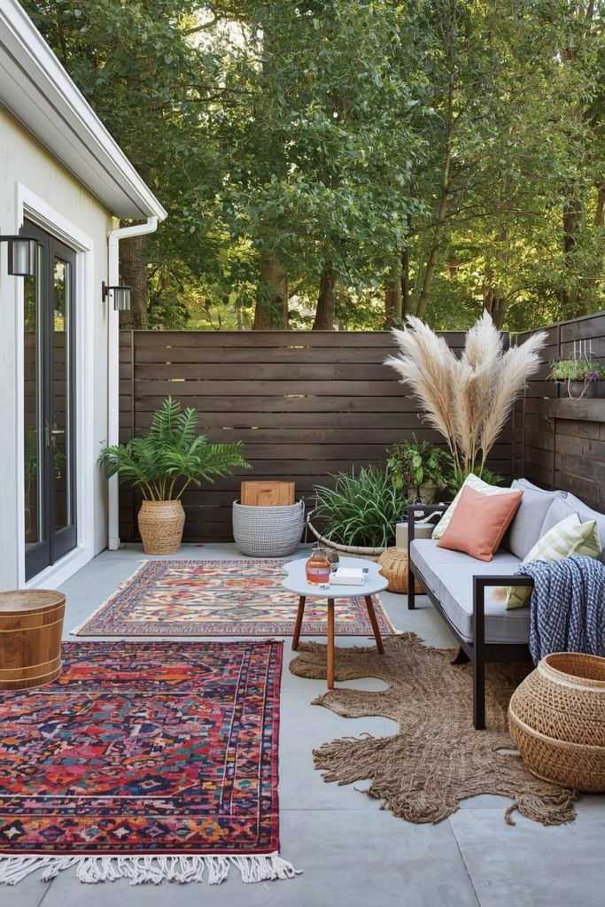 12. Outdoor Rug Patio Styling (Soft & Affordable Layering)