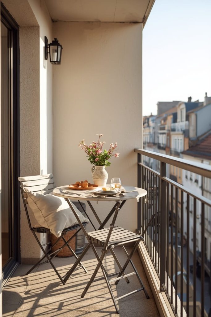 If your balcony is small, a foldable bistro set is a game-changer. I love how this type of furniture gives you a functional dining space without crowding the patio.