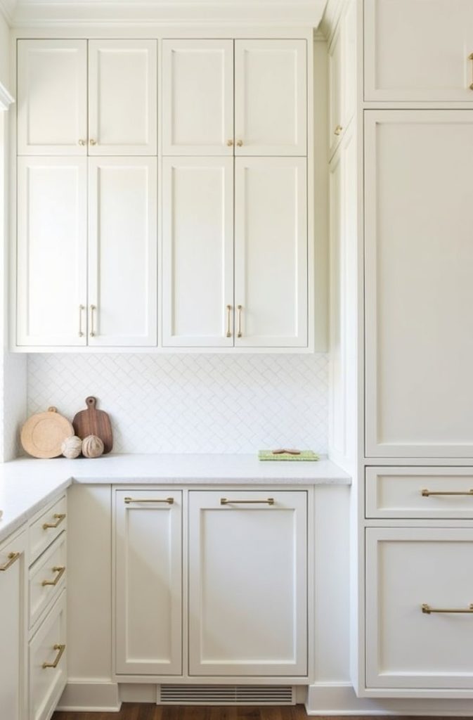 From a design perspective, floor to ceiling cabinets create a built in look that feels polished. When paired with minimal hardware and light colors, they don’t feel heavy. Instead, they deliver maximum storage while maintaining a clean, balanced kitchen aesthetic.