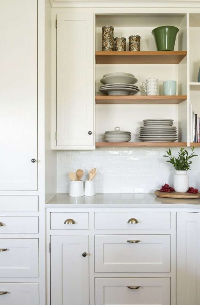 Mixing open and closed cabinets is one of my favorite small kitchen cabinet ideas for visual balance.