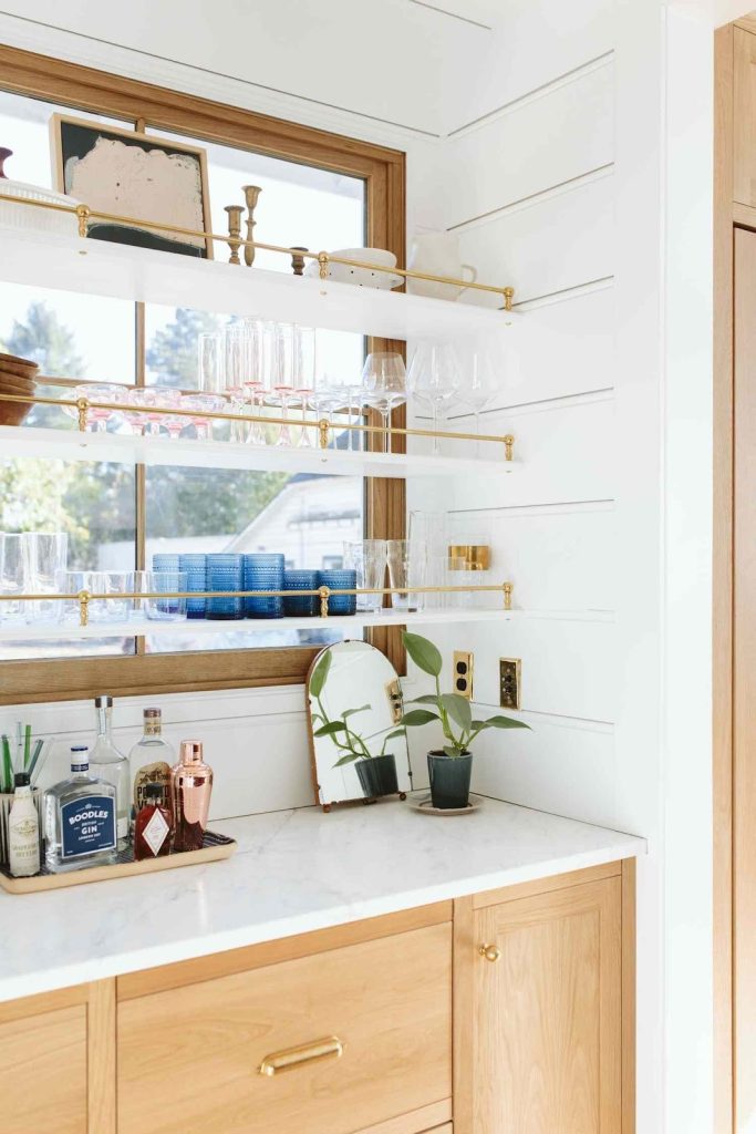 I often use open shelves to display everyday items like mugs, bowls, and spice jars. Not only do they provide storage, but they also add personality and style to the kitchen.
